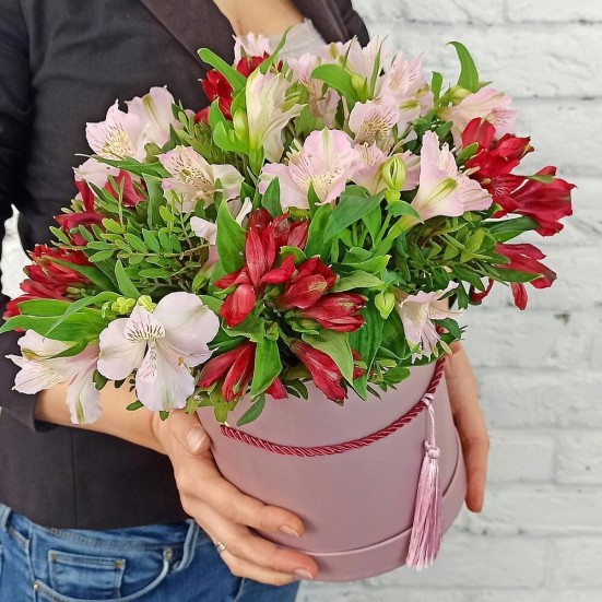 Альстромерия в шляпной коробке