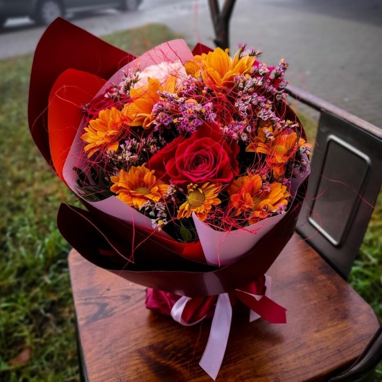 Букет из 3 роз и хризантем