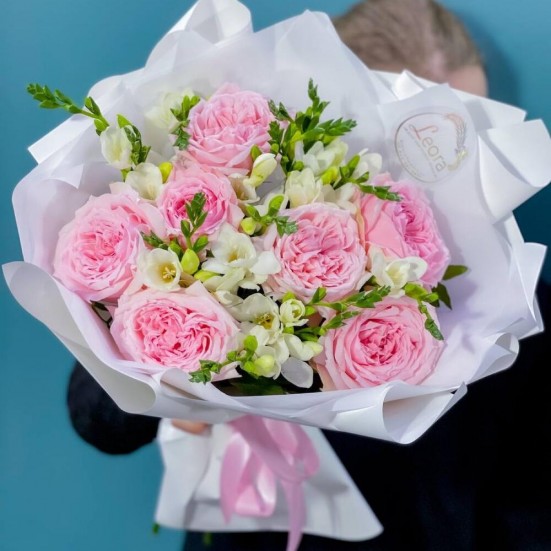 Букет «Пионовидные розы и фрезия» в Иркутске