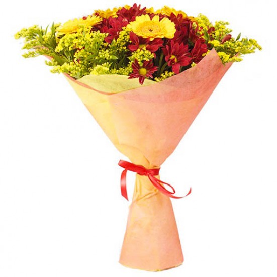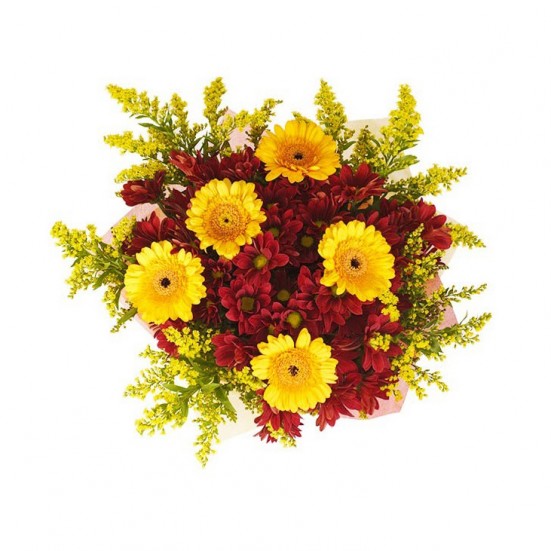 Букет «5 гербер, 5 хризантем, 5 солидаго» в Иркутске