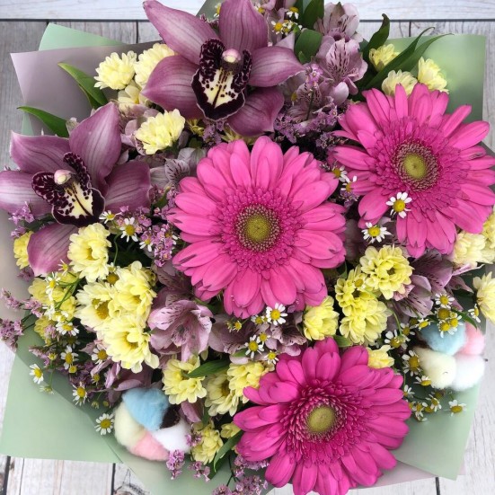Замечательный букет, спасибо! Учли все пожелания, претензий никаких! Буду обращаться ещё и советовать знакомым! Цены приятно удивили