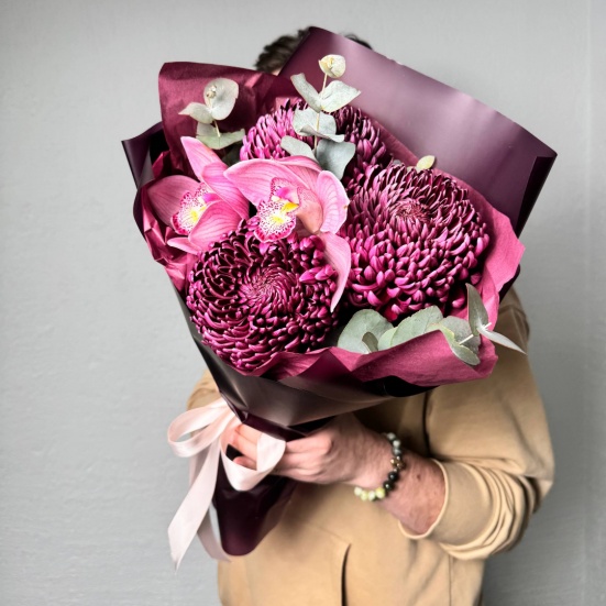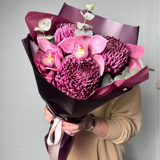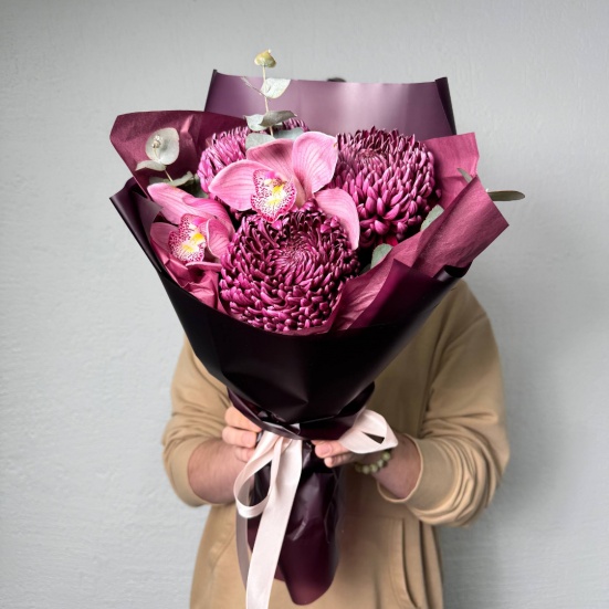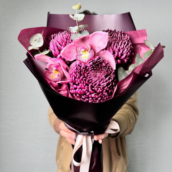 Букет из хризантем Бигуди и Орхидей в Иркутске