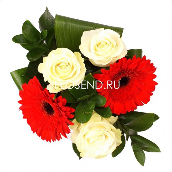 Букет «3 белых роз и 2 красных гербер» в Иркутске