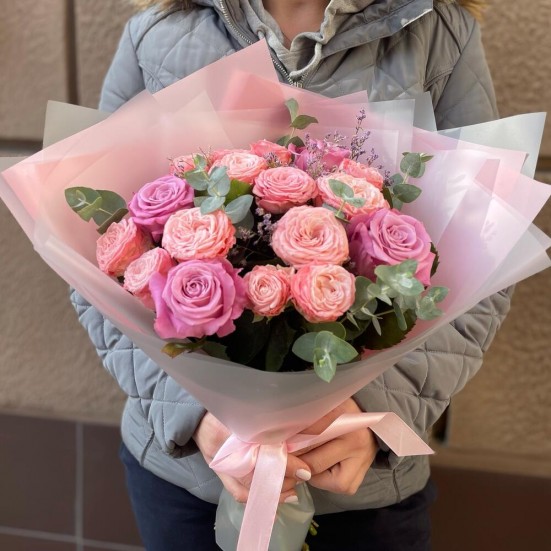 Букет «Пионовидных роз с эвкалиптом» в Иркутске