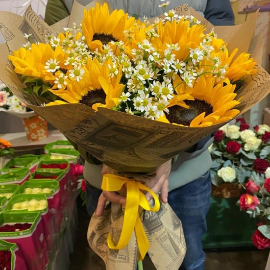Букет из ромашек и подсолнухов в Иркутске