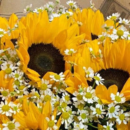Букет из ромашек и подсолнухов