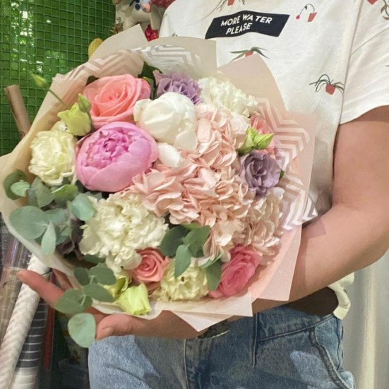 Букет «Розы, пионы, гортензия» в Иркутске
