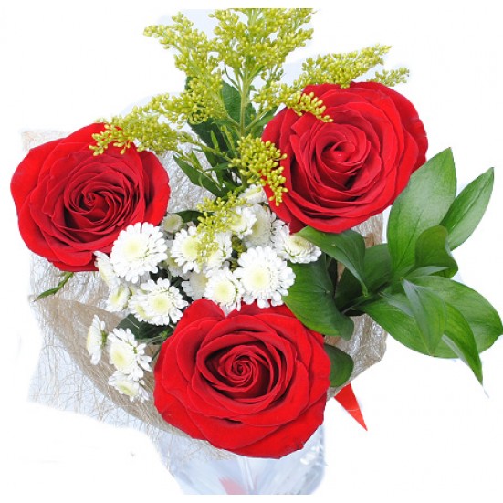 Букет «3 красных роз и 2 белых хризантем» в Иркутске