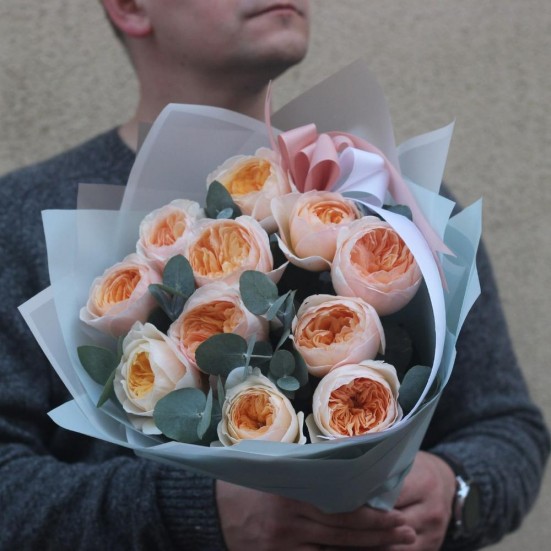 Букет из пионовидных роз Дэвида Остина в Иркутске