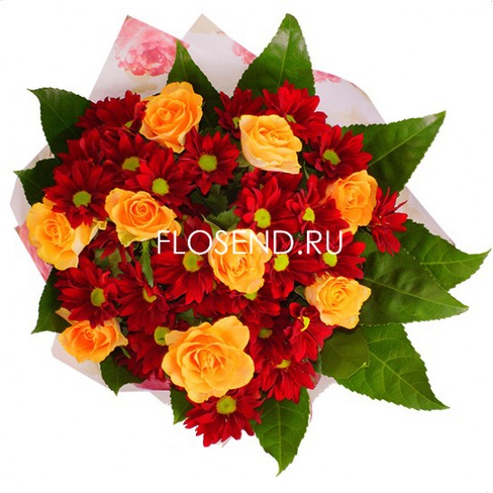Сборный букет из роз и хризантем